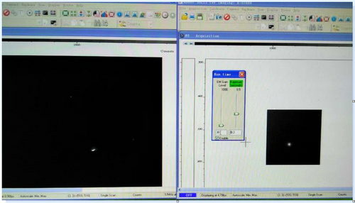821日,1米望远镜首次跟踪捕获墨子号(左图为粗跟踪视场(20′),右图为精跟踪视场(1′))