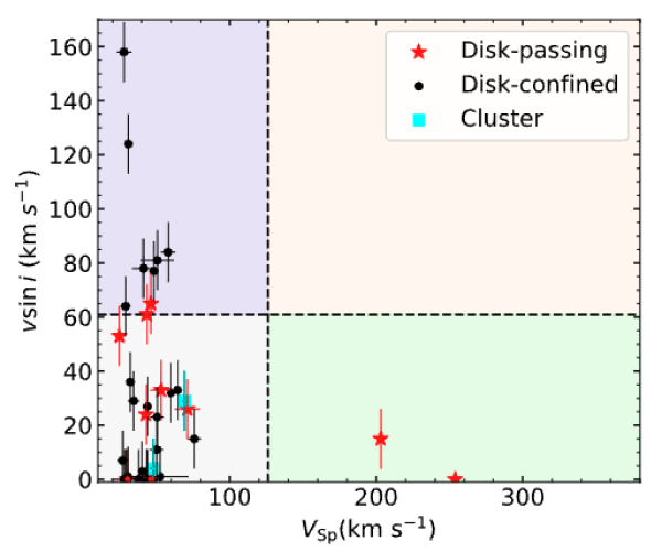 凯发k8云南天文台等团队合作,研究利用LAMOST和Gaia数据,对39颗B型速逃星进行轨道追溯分析,并在空间速度和投影自转速度分布图上揭示了回溯轨迹与两种经典起源可能的对应关系,为理解速逃星的起源提供了新的观测证据。